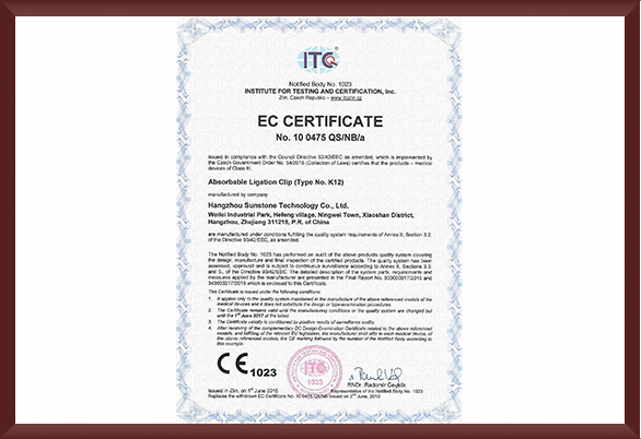 Hangzhou Sunstone Technology Co., Ltd., was established in 2005, is a manufacturing enterprise dedicated to the R&D and sales of innovative medical devices. The enterprise park covers an area of more than 7,000 square meters, and the enterprise assets exceed 30 million US dollars. The company is located in Hangzhou, China, with a production and office area of 20,000 square meters, of which the ISO 8 class cleanroom exceeds 1,000 square meters and the ISO 7 class cleanroom exceeds 500 square meters. Sunstone Technology is the first national high-tech enterprise dedicated to the research and development of absorbable medical consumables in Zhejiang Province, China. It has obtained the qualification of high-tech enterprise research and development center of Zhejiang Province Science and Technology Department of Innovation Medical Devices. Several of the unique medical devices we have developed have applied for Chinese and international patents. These projects are in different stages of research and development, some of which have entered the stage of registration and approval in China, and some in the stage of EU CE certification.