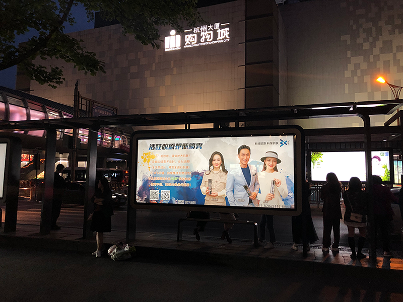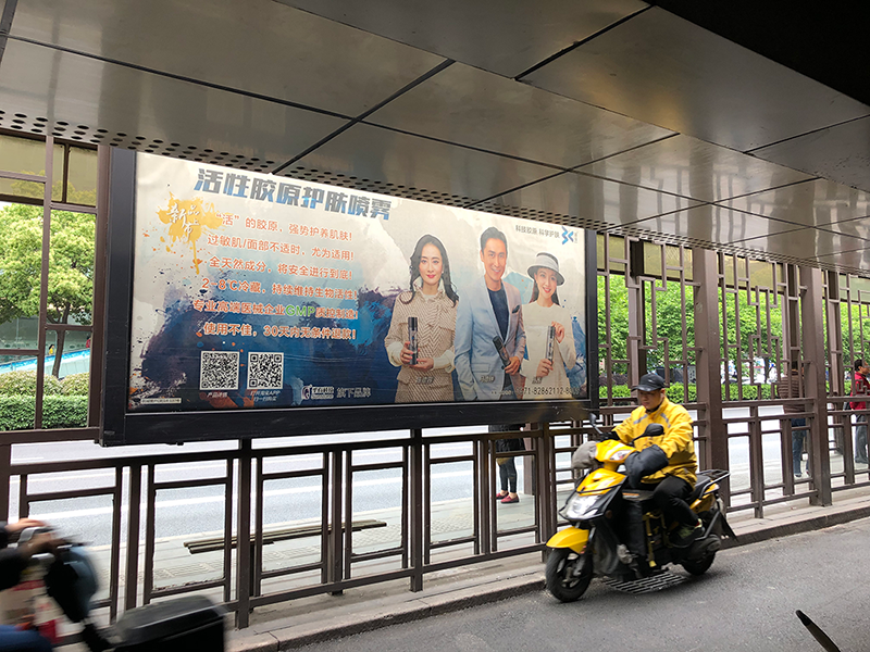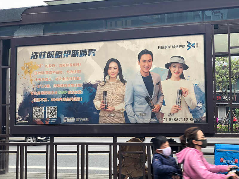 2019春夏之交,圣石科技旗下科學(xué)護(hù)膚品牌姍渡活性膠原護(hù)膚噴霧產(chǎn)品線下廣告在杭城各大公交站點(diǎn)陸續(xù)啟動。