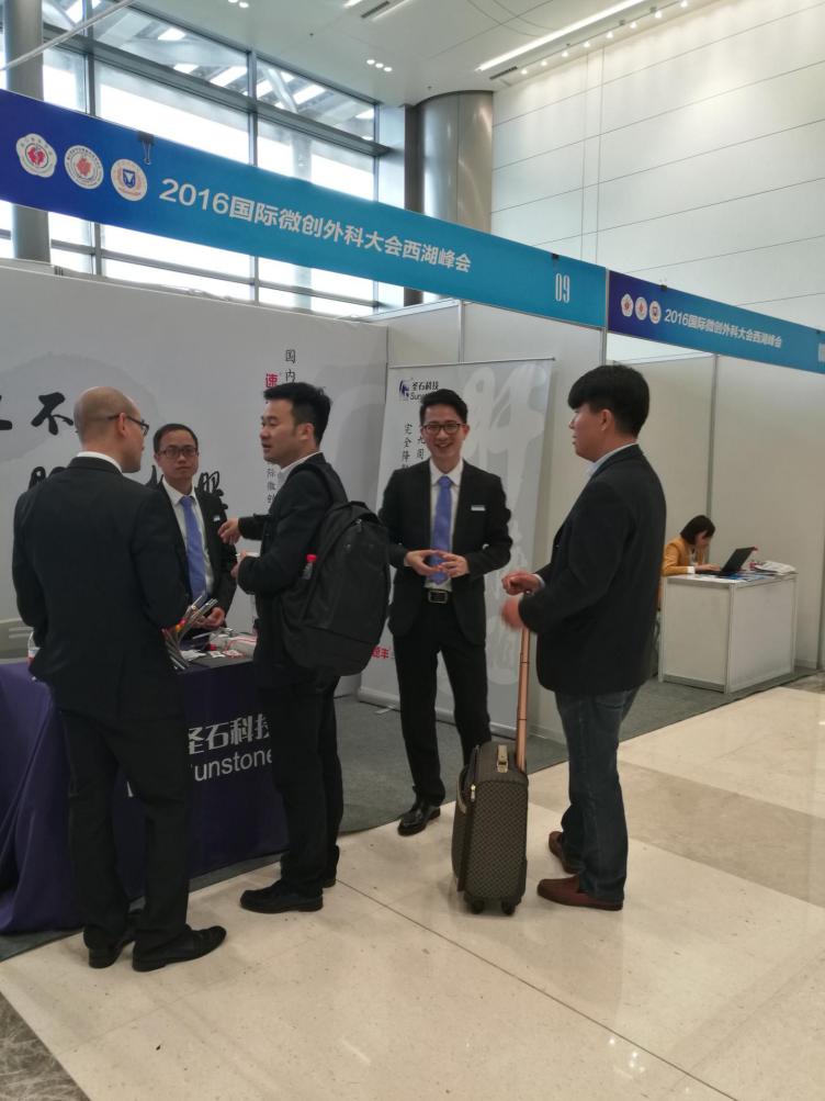會議茶歇期間,我公司展位吸引了眾多專家醫師們的關注,其中有來自英國皇家英格蘭外科學院的專家代表前來了解我公司產品---速豐?可吸收止血結扎夾,現場我司工作人員欣然以嫻熟的英語為其做介紹與產品演示,我公司產品的特點及優勢得到了英國皇家英格蘭外科學院專家的認可與肯定!